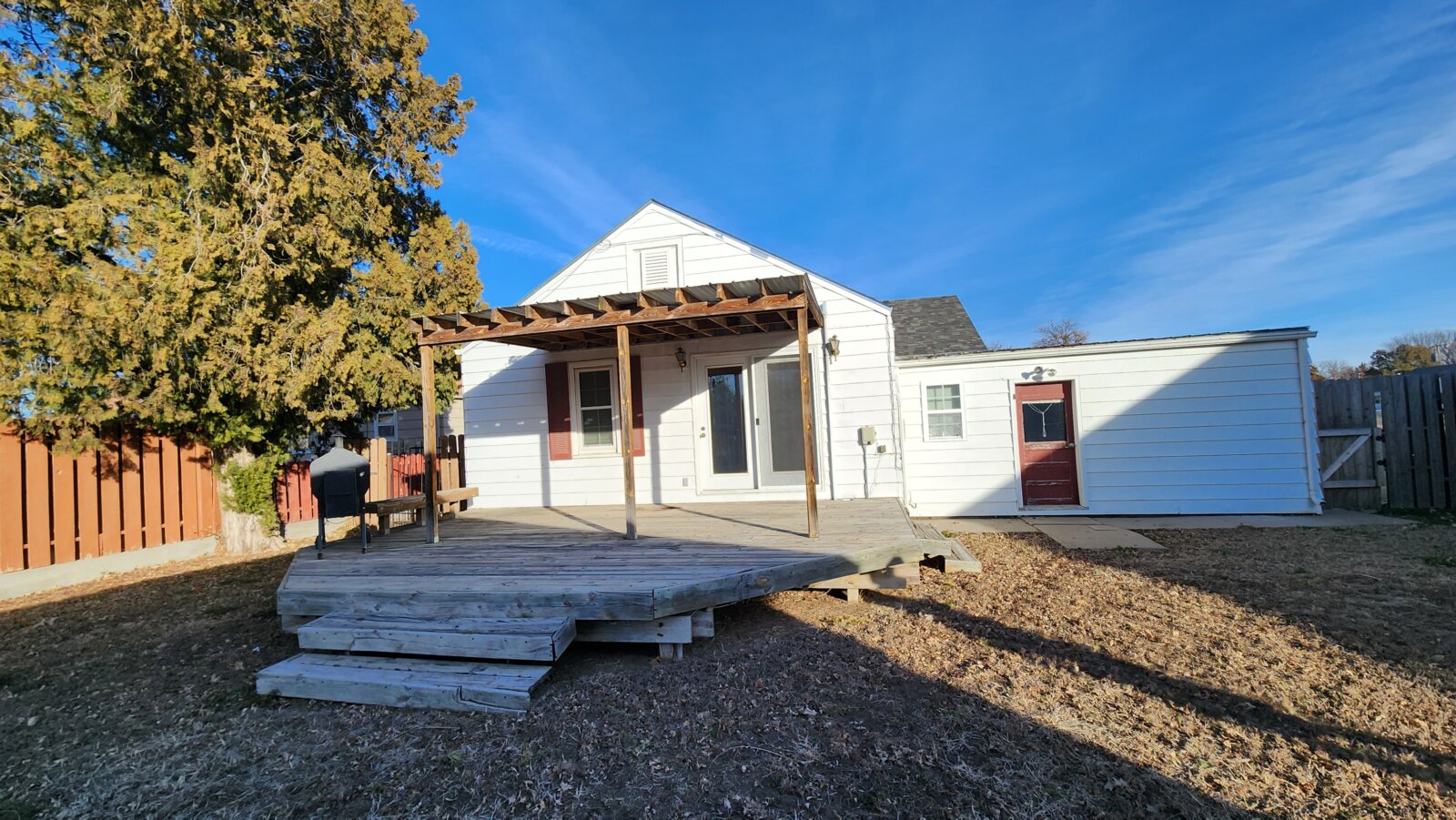 To schedule a viewing, contact Broker Jeanette Krizek at 785-678-7163. This charming home offers 1,238 sq ft of comfortable living space with 2 bedrooms and 1 bathroom. The large open living and dining area creates a welcoming space for everyday living. An attic provides ample extra storage. Enjoy outdoor living with a covered wood deck on the back of the house and a covered cement porch on the front. The large fenced yard features an oversized gate at the back, allowing easy vehicle access into the backyard. Alley access leads to an oversized 2-car garage, perfect for a handyman’s workspace or additional storage. In addition, the property includes a one-car attached garage and a spacious 24′ x 36′ shop/2-car garage in the back, plumbed for a natural gas heater to keep you comfortable during winter months.